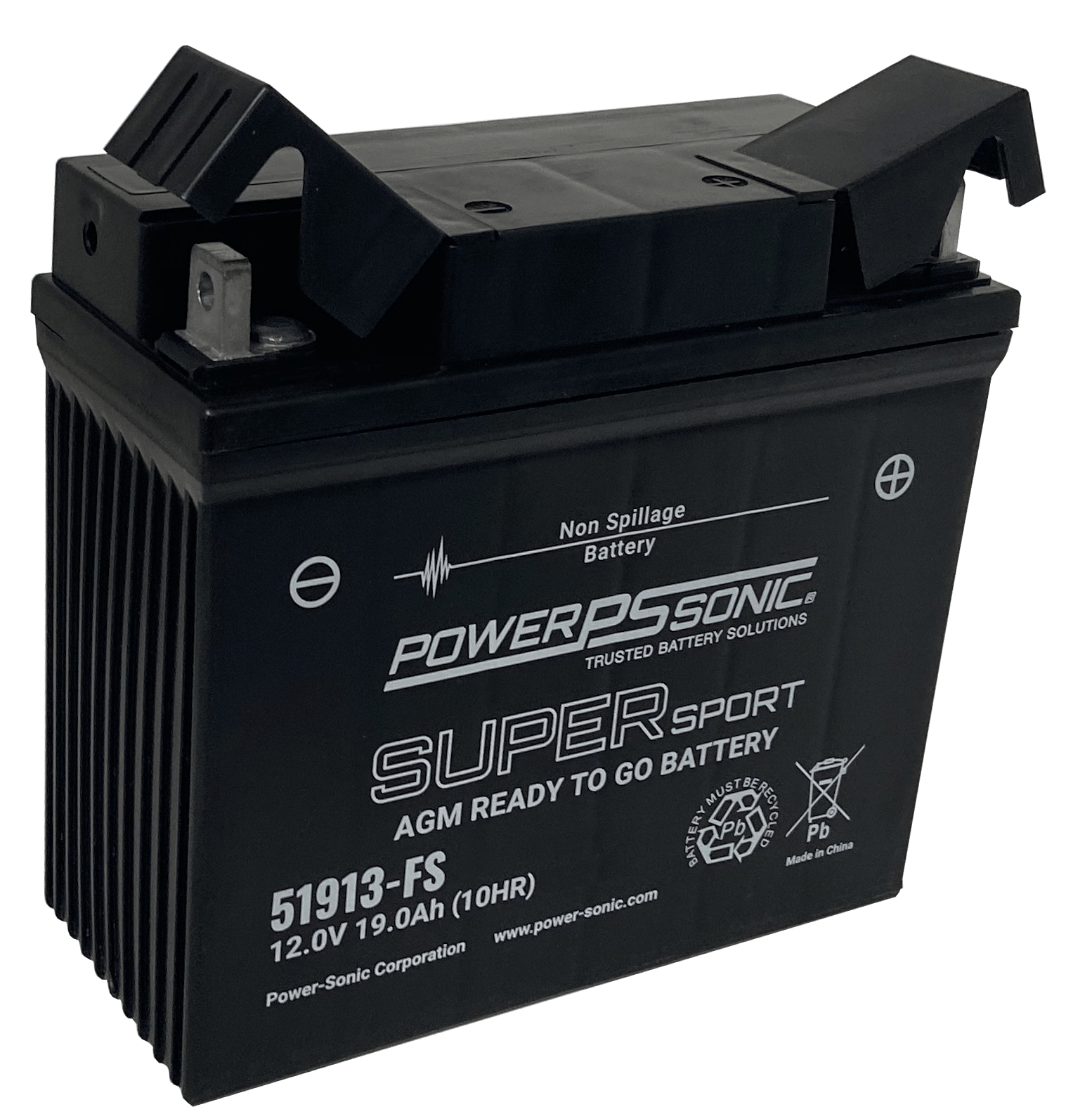 The 51913-FS is part of our Super Sport Series range of Rechargeable Sealed Lead Acid Powersports Battery. The 12.0V, 18.0Ah, and 230.0A maintained free AGM battery offers superior performance to deliver the most cranking power while protecting against corrosion and vibration. The 51913-FS is a sealed maintained free AGM starter battery. Our Rechargeable Sealed Lead Acid Powersports Battery batteries are available in both standard and high performance options. All Power-Sonic batteries are subject to stringent quality controls through each step of the manufacturing process to ensure consistency and reliability.
