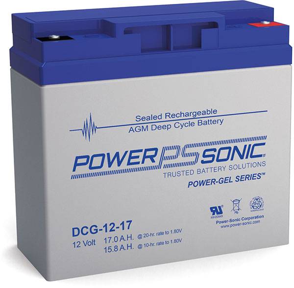 The DCG12-17 is part of our Gel VRLA range. This 12.0V and 17.0Ah battery provides deep discharge recovery and strong vibration resistance. Features include Gas Recombination, Gel Electrolyte, Power Volume Ratio, SLA ABS Case, SLA Cycle Life, and SLA Maintenance Free. These batteries are commonly used in Golf Carts, Medical, Mobility, Signaling (Air,Rail,Sea), Solar, Telecomm, and Wind requiring deep cycle endurance in harsh and high temperature environments. Backed by decades of expertise, Power-Sonic batteries are subject to stringent quality controls through each step of the manufacturing process to ensure compliance, performance consistency, and reliability.